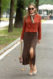 It was a cold and rainy morning in Milan and I decided to stay warm and also stylish. I wore long knit dress from Brusnika Brand that is a little bit see-though, but it comes with little knitted shorts. As an ensemble Brusnika offers a cropped orange blazer that adds structure to the look.